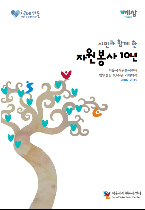 서울시자원봉사센터는 이와 같이 지난 10년간의 사업 성과와 주요 통계를 비롯해 자원봉사 관련 분야 리더 10인이 꿈꾸는 자원봉사의 미래, 시민‧유관 단체의 축하메시지 등을 담은 백서 <시민과 함께한 자원봉사 10년>을 발간했다. 사업성과 부문에서는 ▴자원봉사의 지역기반 강화 ▴자원봉사 캠프 ▴아파트봉사단 ▴동행 프로젝트 ▴전문가 양성 교육 ▴자치구 자원봉사센터 및 캠프 주요 프로그램 등 지역문제 해결과 마을공동체 회복을 위해 노력해온 지난 10년간의 노력 소개하고 있다. ‘자원봉사의 미래를 꿈꾸는 10인’의 인터뷰에서는 자원봉사를 통해 새로운 가치를 발굴하고자 하는 리더 들이 말하는 자원봉사의 미래상을 통해 서울시자원봉사센터가 나아가야 할 방향에 대해서 가늠해 볼 수 있을 것으로 기대된다.