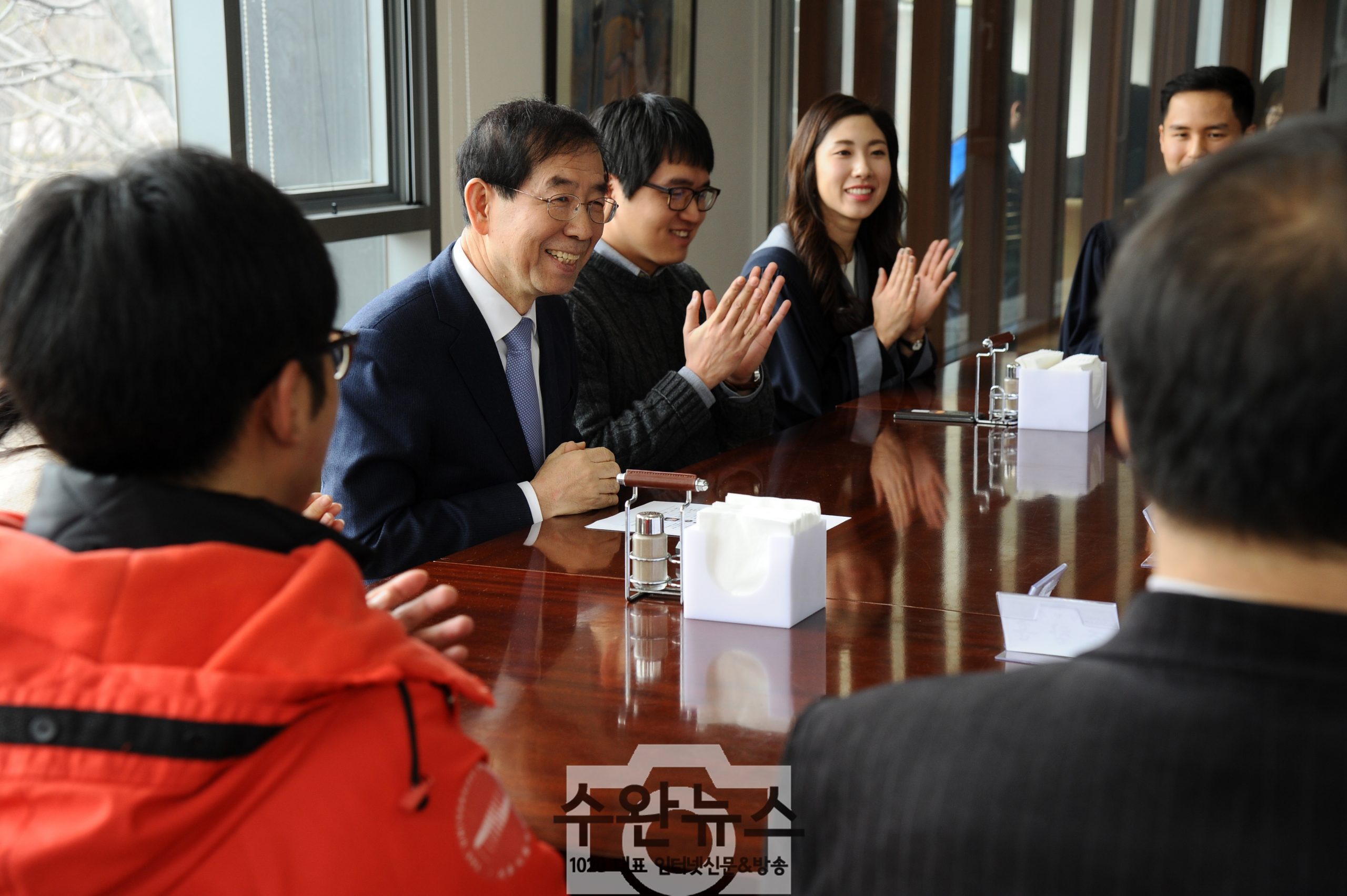 [수완뉴스=서울] 22일 서울시립대의 첫 반값 등록금 수혜자들의 졸업식이 열렸다. 이날 졸업식에는 박원순 서울시장이 참여하여 축사를 썼으며, 졸업생들과 만나 그들의 이야기를 듣는 등의 행보를 이어나갔다.