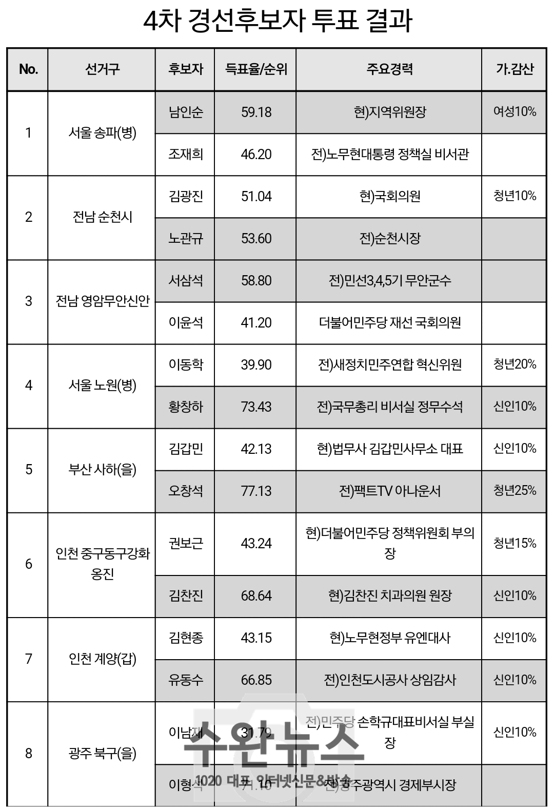 △ 더불어민주당 제 4차 공천심사결과