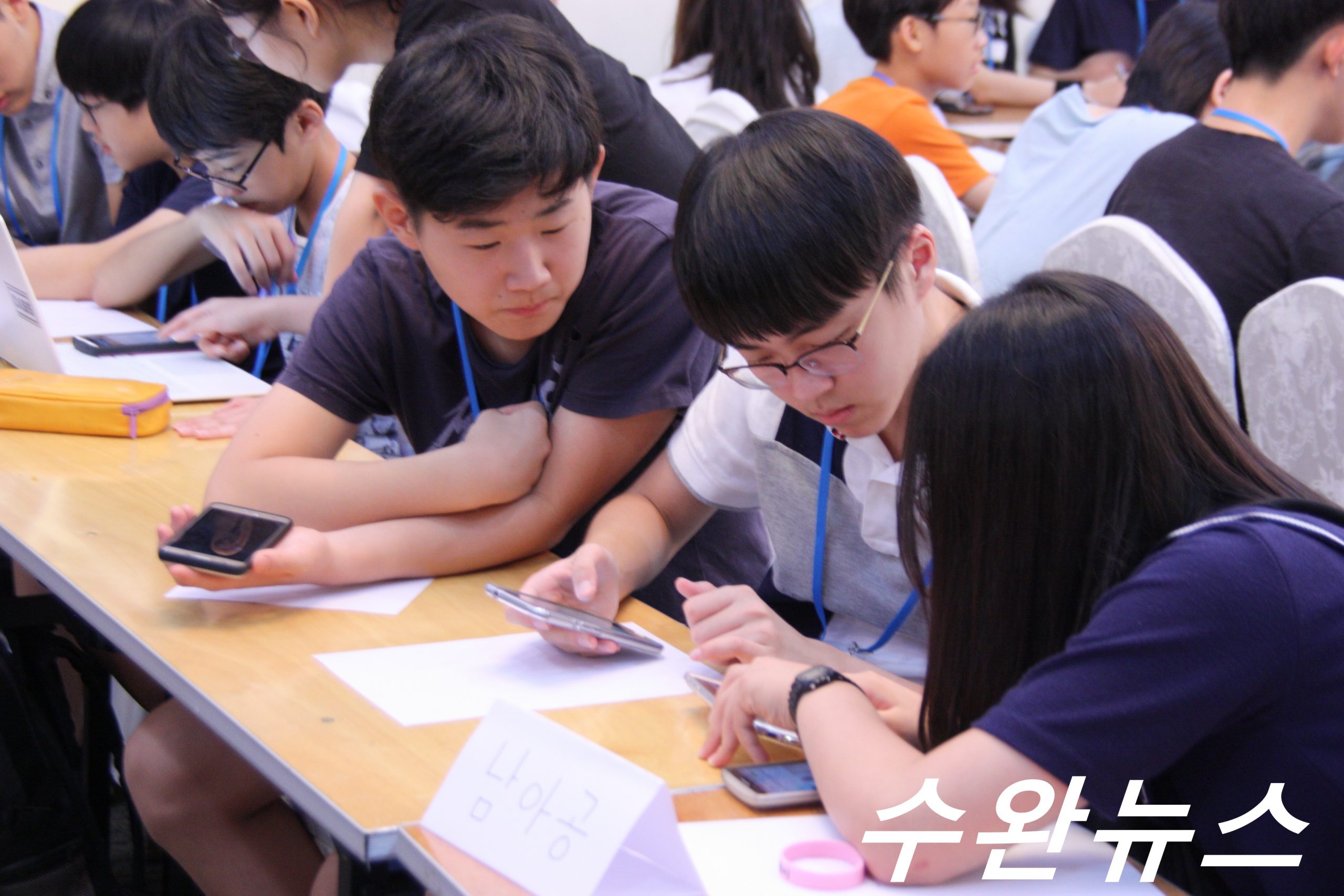 [포토] 오늘 오전 9시 30분 HEROES 캠프 대륙별 비정상회담 회의 시작 전 자료 조사를 마무리하고 있는 참가 학생들 의 모습을 촬영한 사진이다.