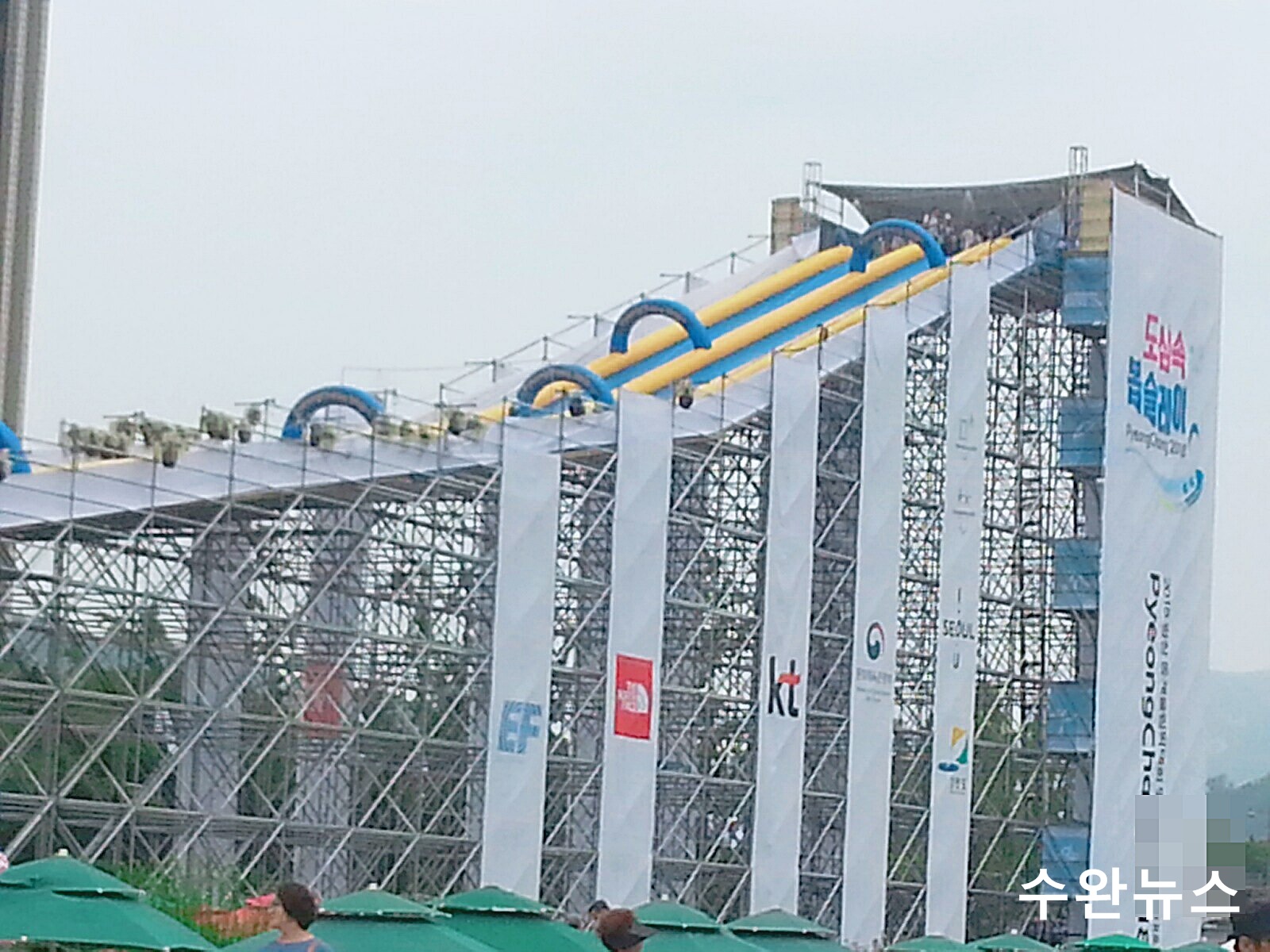 [수완뉴스= #서울 #광화문 , #2018  #평창올림픽 ] 박현우 인턴기자, 2018평창동계올림픽을 6개월 정도 남긴 지금 광화문에서는 색다른 체험이 준비되어있다. 바로 ‘2018 평창동계올림픽 도심속 봅슬레이’이다. 이 축제는 국내 최대 규모의 높이 20m, 길이 360m의 초대형 봅슬레이 워터슬라이드 체험과 함께 야외공연, 올림픽/페럴림픽 종목 체험, 동계스포츠 VR체험 등의 다채로운 행사를 마련하여 평창동계올림픽 홍보와 더위에 지친 시민들의 갈증 해소 역할을 하고 있어 사람들에게 큰 호평을 받고 있다. 또한 먼 타지에서도 이번 행사에 참여하기 위해 찾아오는 등 전국각지 사람들의 관심이 집중되고 있다.