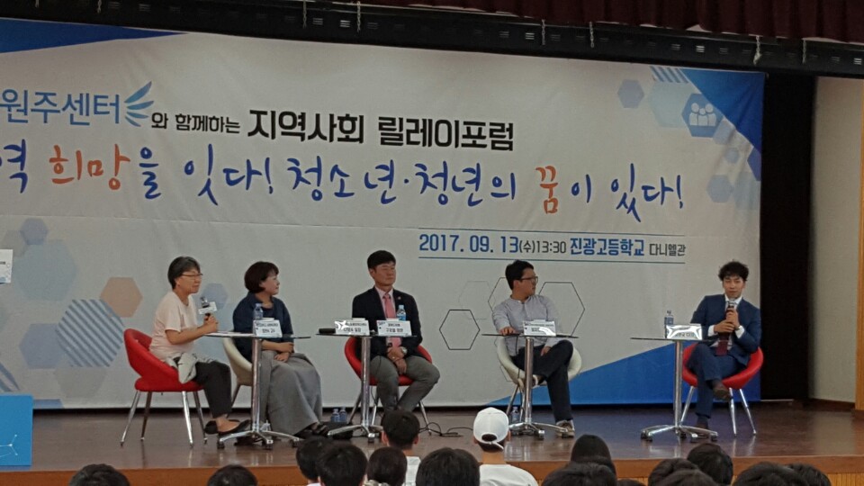 [수완뉴스=진광고등학교] 박현우 인턴기자,  13일 오후 강원도 원주 진광고등학교 다니엘관 강당에서 제 4차 2017 희망플랜 지역사회 릴레이포럼이 열렸다.