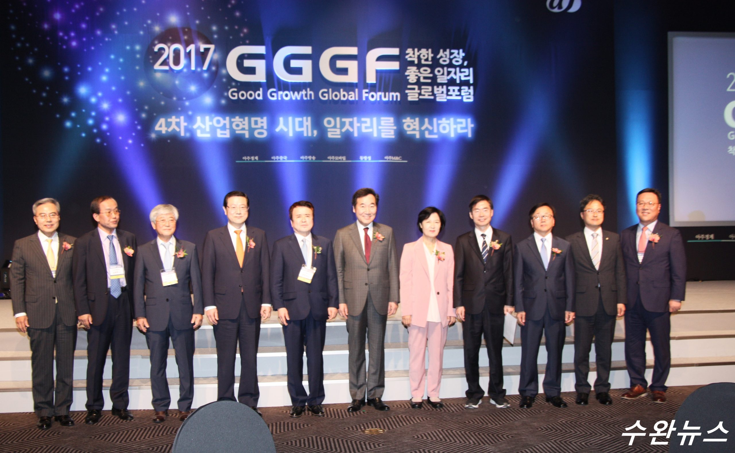 포토 일반정치뉴스수완뉴스 포토[포토기사] 2017 GGGF 착한 성장, 좋은 일자리 글로벌포럼에 참석한 내빈들 단체 사진By Kim Tongjoo - 2017년 9월 20일0공유하다Email인쇄LINENaverFacebookTwitterWhatsAppTelegram ▶ 포스트 듣기 음성을 생성하는 중...[포토] 개회사 중인 아주경제 곽영길 회장 ⓒ 수완뉴스[수완뉴스=착한성장, 좋은일자리 글로벌포럼] 김동주 기자, 오늘(20일) 서울시 중구에 위치한 더 플라자 호텔 별관에서 2017 GGGF 착한 성장, 좋은 일자리 글로벌포럼 행사가 열렸다. 이날 내빈으로 곽영길 아주경제 회장, 이낙연 국무총리, 추미애 더불어민주당 대표, 전병헌 청와대 정무수석 등이 참여한 가운데 행사가 개최됐다. 사진, 김동주 선임기자 -사진 2개 추가