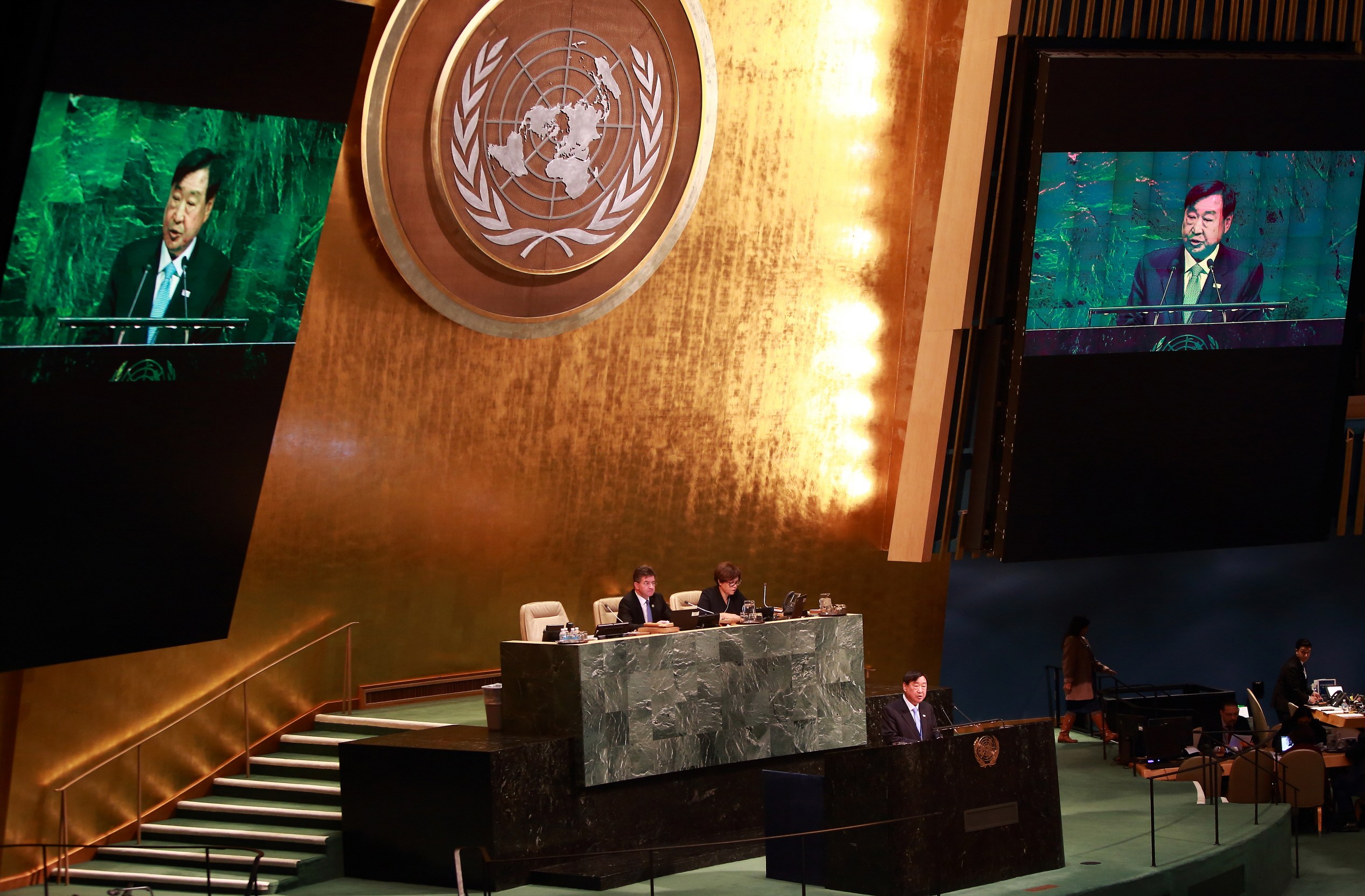 어제 UN 뉴욕본부에서 평창올림픽 휴전결의안 채택했을 때의 UN 회의장이다. 휴전결의안의 주요내용 요약은 2030 지속가능개발 아젠다에서 스포츠는 지속가능한 개발의 촉진제 역할을 하며, 보건 · 의료 · 사회 통합 · 교육 및 청소년과 여성의 권리 강화 등에 기여하고 2018 평창올림픽대회는 2020 동경올림픽, 2022년 베이징올림픽으로 이어져 아시아에서 올림픽 3연속 개최되어 스포츠 분야 등에서의 한 · 일 중간 새로운 파트너십의 가능성을 제공한다. 2018 평창올림픽이 한반도와 동북아에서 평화, 개발, 관용, 이해의 분위기를 조성하는 기회가 되기를 기대한다. 동계 스포츠 기반시설을 갖추지 못한 지역의 청소년을 위한 ‘드림 프로그램’ 등 평창올림픽의 노력을 인정하고 인권, 인간개발, 빈곤 완화, 양성평등, 평화구축, 지속가능 개발 등 분야에서 IOC와 유엔 등 관련 기관들의 공동 노력 또한 인정한다. (전문 간추린 요약내용), 회원국들이 2018년 대한민국 평창에서 개최될 제23회 동계올림픽대회 개막 7일전부터 제12회 동계 패럴림픽대회에 참가하는 선수, 관료, 및 여타 모든 관련 인사들의 안전한 통행, 접근 및 참가를 보장할 것을 촉구한다. 올림픽 휴전 결의의 가치를 이행하기 위한 회원국들간 협력의 중요성 및 이를 위한 국제올림픽위원 유엔의 역할을 강조하며 모든 회원국들이 올림픽 및 패럴림픽 기간과 그 이후에도 스포츠를 도구로 평화, 대화, 화해를 증진하고자 노력하는 국제올림픽위원회 및 국제패럴림픽위원회와 협력할 것을 촉구한다. (본문 간추린 요약내용) 사진: 조직위원회 제공