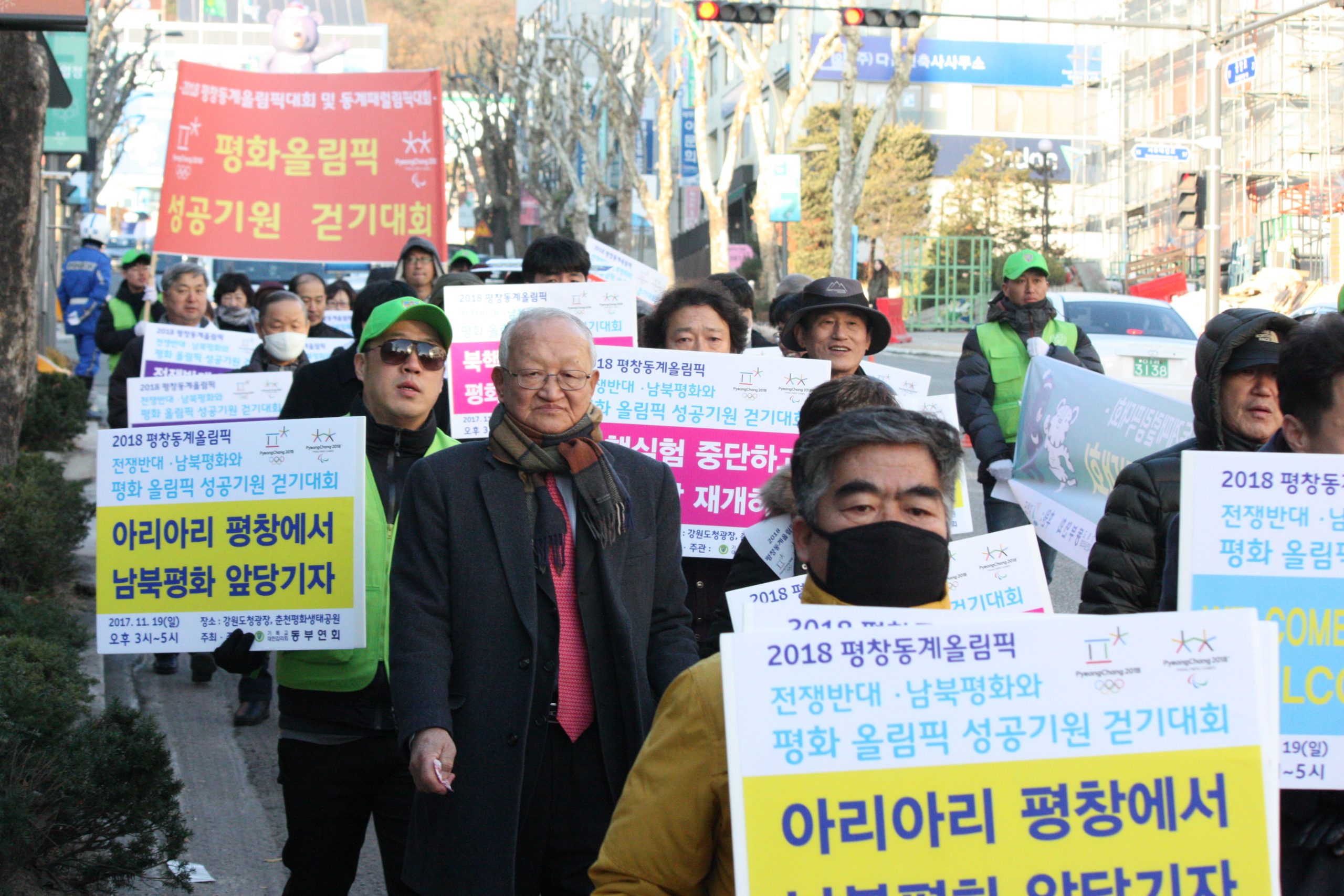 [수완뉴스=도청광장] 오늘 19일 강원도청 광장과 춘천평화생태공원까지 2018 평창 동계올림픽 대회의 평화올림픽으로의 성공개최를 기원하기 위한 걷기대회가 개최했다. 이날 강원도민과 종교인 2,018명과 주요인사 엄기호 한기총 회장, 김선규 한기연 회장, 전명구 기독교감리회 감독회장, 최헌영 기독교감리회 동부연회 감독의 참가한 아래 대회가 진행되었다. 걷기대회는 기독교대한감리회 동부연회의 주최 · 주관으로 열렸으며 평화올림픽 성공기원을 위한 선언문 낭독 등이 있었다.