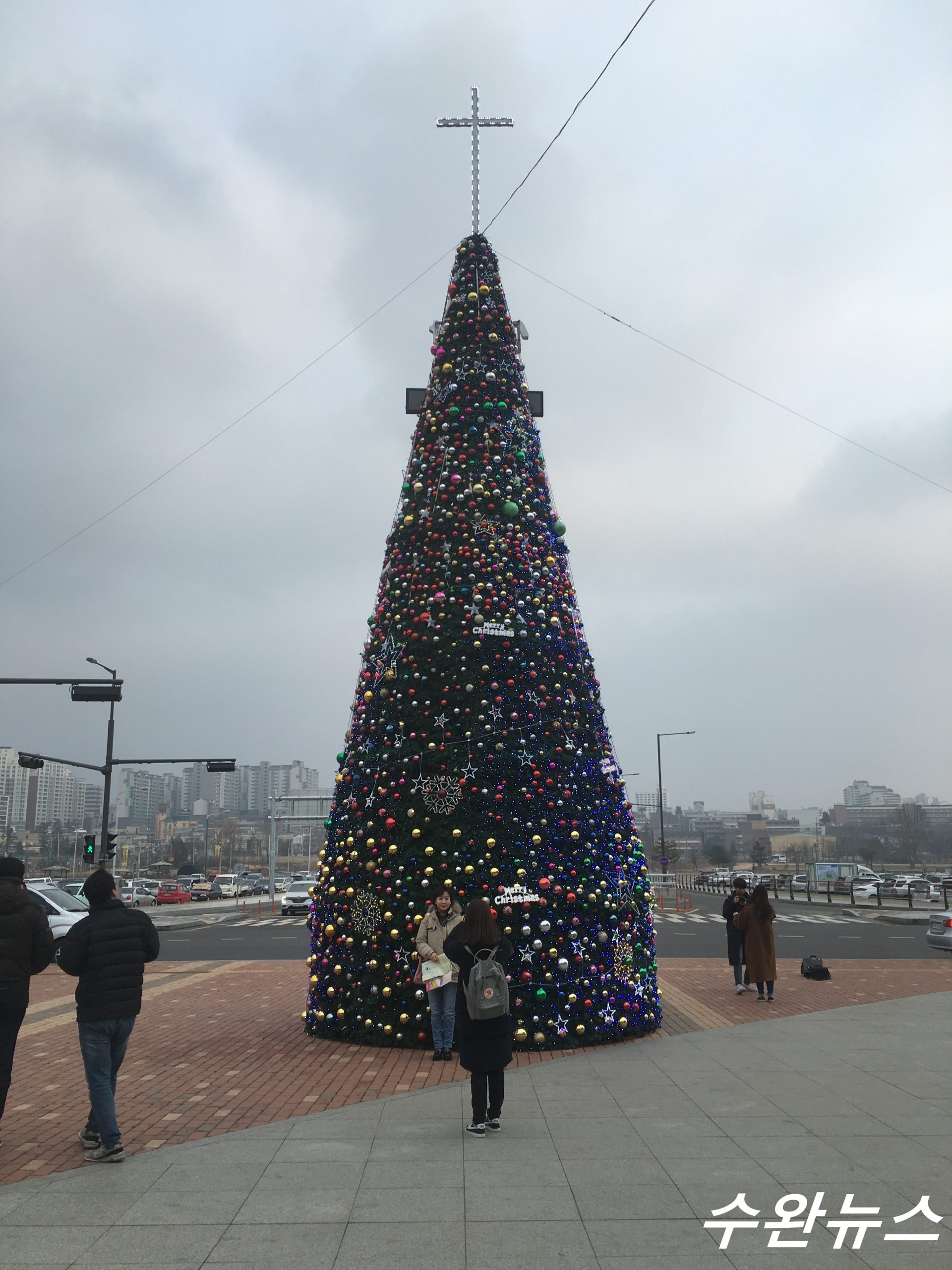 [수완뉴스=춘천역]  김동주 선임기자, 박주헌 영상촬영기자 /  오늘 오후 4시 30분, 강원도 춘천의 춘천역 앞에서는 “춘천시민과 함께하는 2017, 성탄 트리 점등 감사 예배 및 점등식”이 열렸다.  살고 싶은 행복도시 춘천시가 후원하고 춘천기독교연합회가 주관하는 이번 행사는 12월 크리스마스를 맞이하며 크리스마스 트리에 점등하는 기념행사였다.