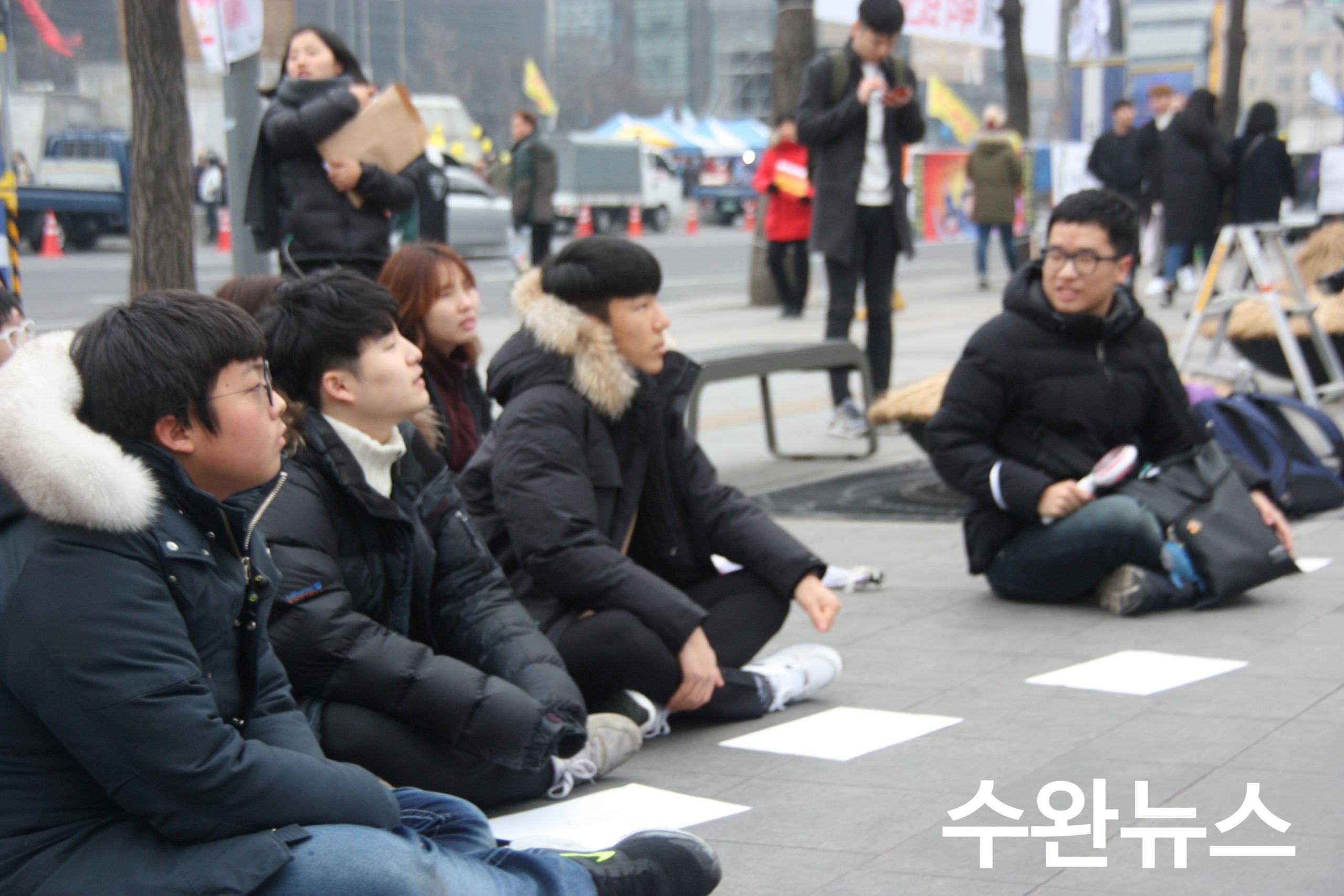 ▲ 위 이미지는 이번 해 2월 광화문 광장 세종문화회관에서 열린 18세 선거권 집회 참여 학생들의 모습이다.