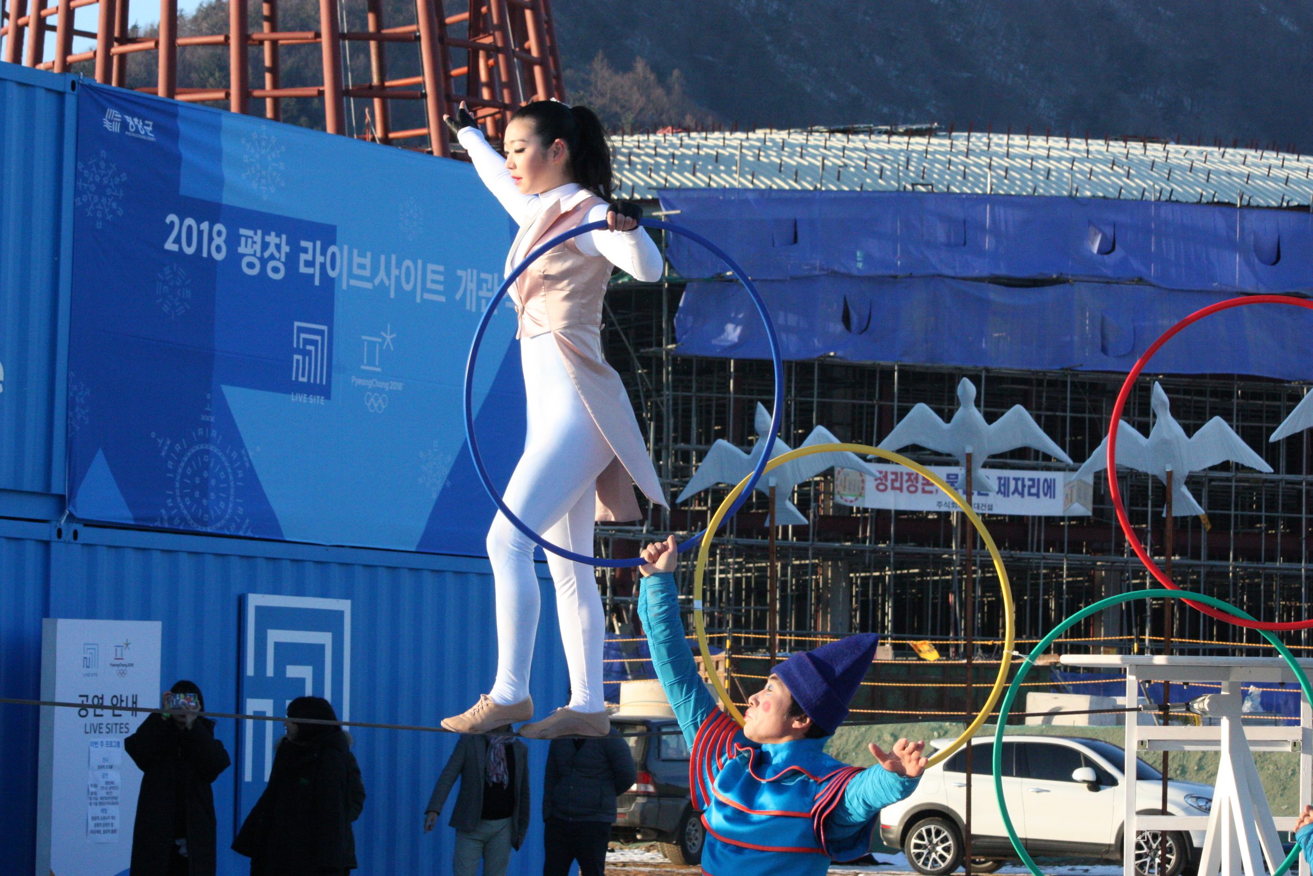 [수완뉴스=평창, 진부] 어제 6일 오후 4시부터 평창 라이브사이트 개관식을 축하하는 퍼포먼스 공연이 열렸다.  / 사진: 수완뉴스