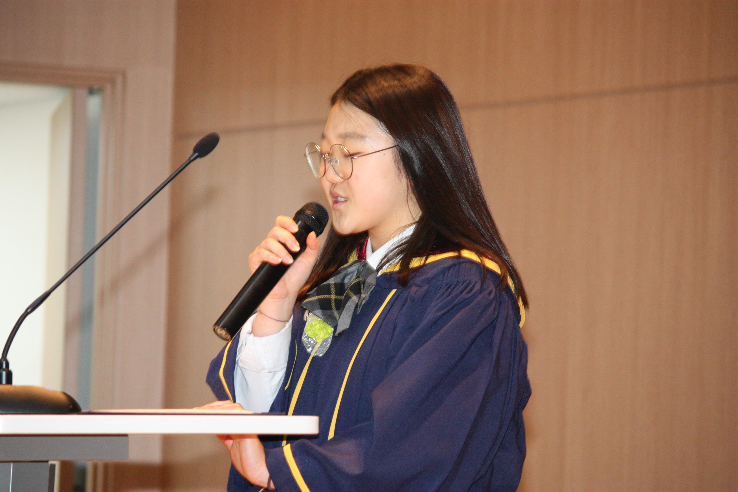 [수완뉴스=횡성] 어제 8일, 현천고 1회 졸업식에서 답사 낭독하고 있는 김유진 졸업생 대표의 모습이다. 이 날 졸업식은 3학년 학생 9명으로 구성된 졸업준비위원회가 졸업앨범 및 졸업주간행사, 그리고 졸업식까지 손수 기획하고 진행해 ‘학생 중심’의 빛나는 졸업을 완성해 갔다. 지난 2일부터 5일까지 진행된 졸업주간에는 졸업생 연주회와 졸업생 작품전, 졸업여행 영상전, 토크 콘서트, 오대산 겨울산행, 예비 사회인 면접, 롤링 페이퍼 쓰기, 졸업식장 꾸미기 등이 진행되었다.