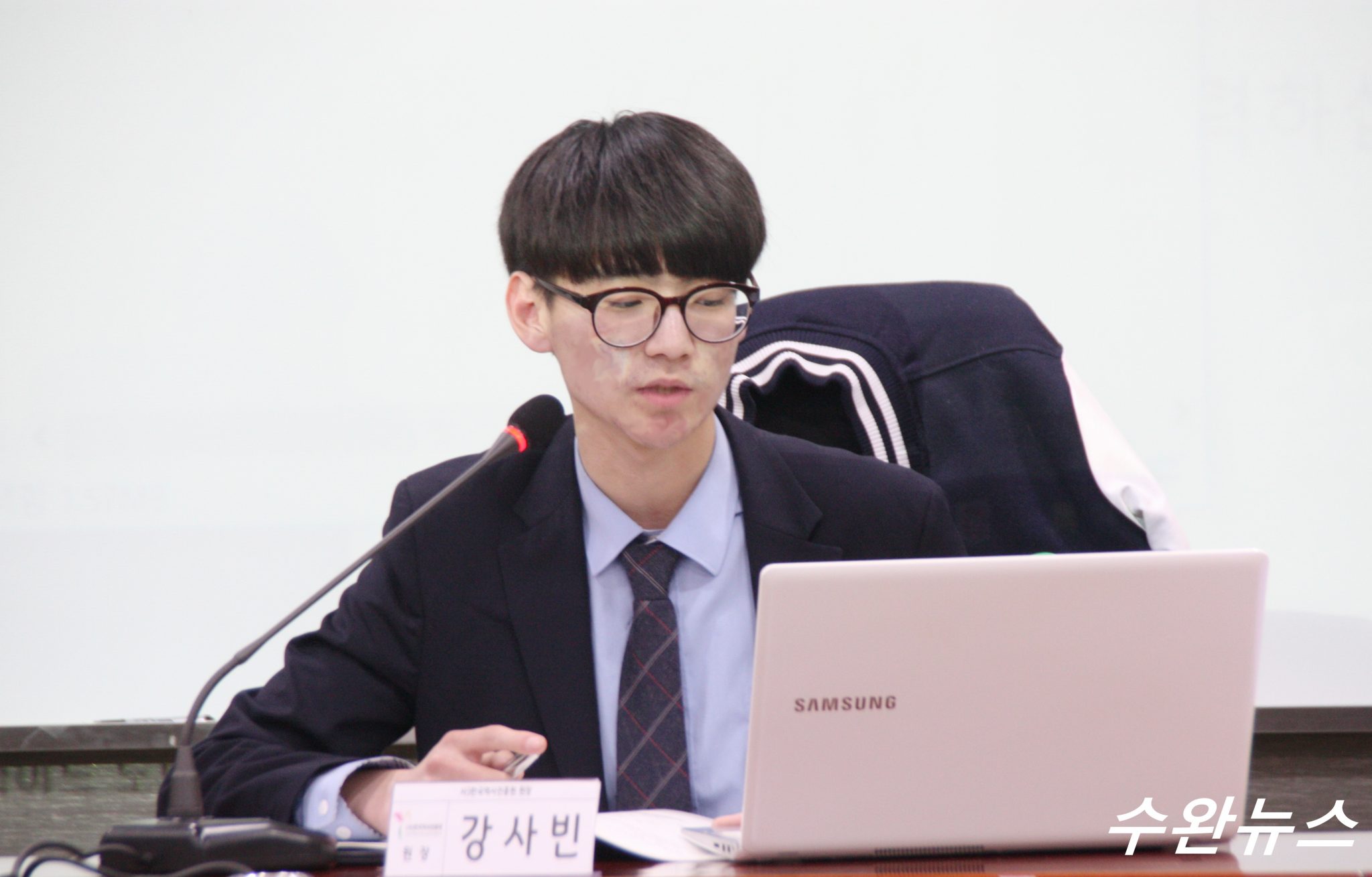 [수완뉴스=한국역사진흥원]  오늘 (14일)오후 16시, 국회 의원회관 제 8간담회의실에서는 한국역사진흥원 주최, 한국학진흥원 주관으로 “대한민국의 미래에게 역사 교육의 방향을 묻다” 토론회가 열렸다. 이날  토론회에서는 한국언론인클럽 사무총장, 사단법인 한국학진흥원 김영목 이사장 등 내빈이 참가한 가운데 성대하게 이뤄졌다. 사진은 토론회서 발언하고 있는 강사빈 한국역사진흥원 원장의 모습을 담은 사진이다. 한편, 강사빈 원장은 인천포스코고등학교에 재학중인 학생이다.