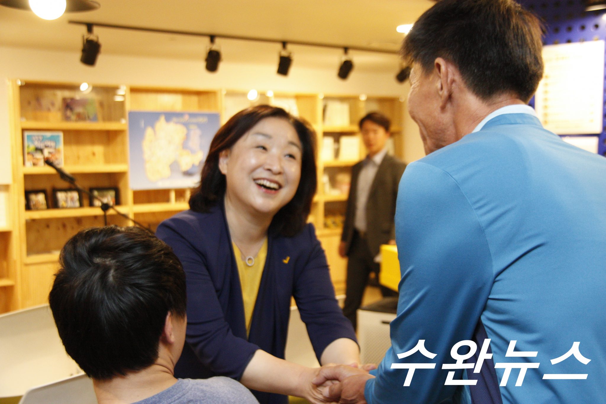 [수완뉴스=원주(쿱드림)] 오늘 (8일) 오후 2시 부터 정의당 심상정 의원이 원주시의원 기호 5번 후보, 이규삼 후보의 선거 유세 지원에 나서기 위해, 원주 보건소 지하 쿱드림 카페에서 원주 관내 시민단체들과 간담회를 가졌다.  이날, 간담회에서는 정의당의 보육 아동여성교육생태환경 공약 발표 및 설명회와 원주 SRF 발전소미세먼지 해결 방안을 나누고 토론하는 시간을 가졌다.