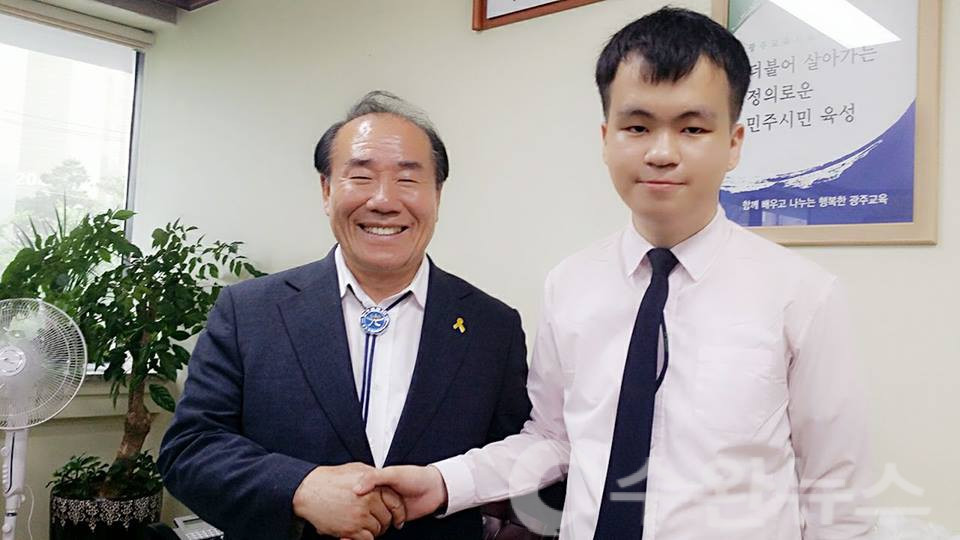 기자: 안녕하십니까, 교육감님 문흥중학교 3학년(2017년 당시)에 재학 중인 문환성입니다.