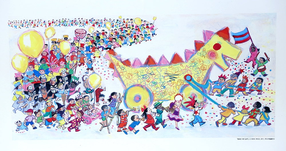 [수완뉴스=임윤아 칼럼리스트] 처음엔 아이가 그린 건 줄 알았는데, 발췌한 것이다. 이 화려한 색채가 돋보이는 각 그림별 스토리가 있다. 이 전시회의 장점은 구경하는데 오래 걸리지 않을뿐더러 도서관을 이용하는 다양한 연령대의 사람들이 한번씩 생각하게 하는 주제를 툭, 툭, 무겁지 않게 던져주는 것에 있다.