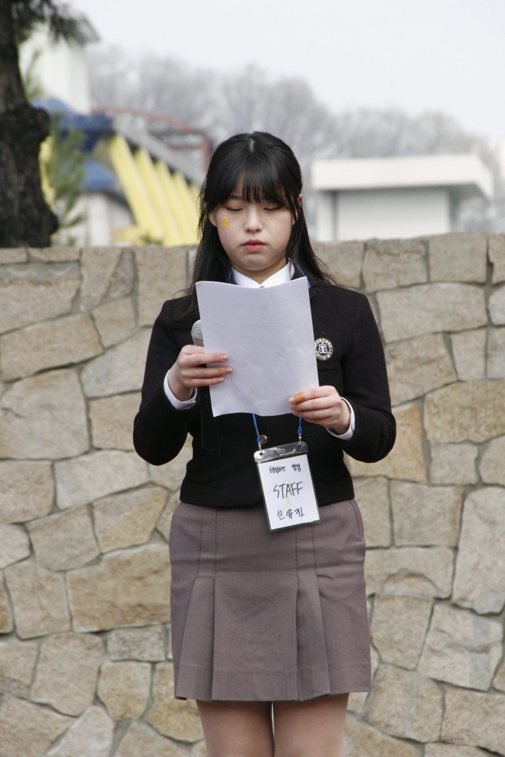 신유진 학생이 낭독한 편지의 내용은 “저는 당신의 이름을 알지만 당신은 몰라요. 조용한 사람일수도, 시끄러운 사람일수도 있죠. 착한 사람이였나요? 아마 착하기도 하고 나쁘기도 했겠지요. 때로는 상처주고, 더 상처 받았겠지요. 당신도 상상조차 할 수 없는 미래따위 재껴두고, 당장의 점심을 위해 계단을 3칸씩 뛰어내리기도 했겠지요. 저는 당신을 본적 없지만 당신의 얼굴을 알아요. 아니 사실 그건 진짜 당신의 모습은 아니겠지요? 좀더 웃는상이라던가 눈이 클수도 있겠지요. 긴장한 탓에 표정이 굳어버려 편집으로 입꼬리를 끌어올려버렸을지도 몰라요. (제가 그랬거든요.) 저는 당신을 몰라요. 어떤 사람이였나요? 무엇이 되고자 했나요. 감정은 커녕 당신의 성격도 모습도 좋아하는 것도 저는 아무것도 몰라요. 당신의 고통은 가늠조차 할 수 없어요. 요즘 저는 영혼이란 없었으면 좋겠다는 생각을 해요. 당신이 떠나고 달라지지 않는 세상을 알지 못하기를 바래요. 얼굴 없는 사람들의 달라지는 반응을 읽지 못하기를 바래요. 무엇보다도 당신의 부재로 힘들어하는 사람들의 얼굴을 보지 못하기를 바래요. 허나 만약 있다면, 만약 영혼이라는 것이 존재한다면, 다 잊어버렸으면 좋겠어요. 고통도 슬픔도 분노도 외로움도 아름다운 세상에서 당신의 모습으로 아름답게 당신이 되고자 하는 모습으로 존재하였으면 좋겠어요. 행복하였으면 좋겠어요. 외로움과 고통으로 가득한 아름답지 못한 세상에서 힘드셨겠지만 그만큼 행복한 일이 많았으면 좋겠어요. 수고 많으셨습니다. 어쩌면 당신의 누군가가 되었을 존재가.
