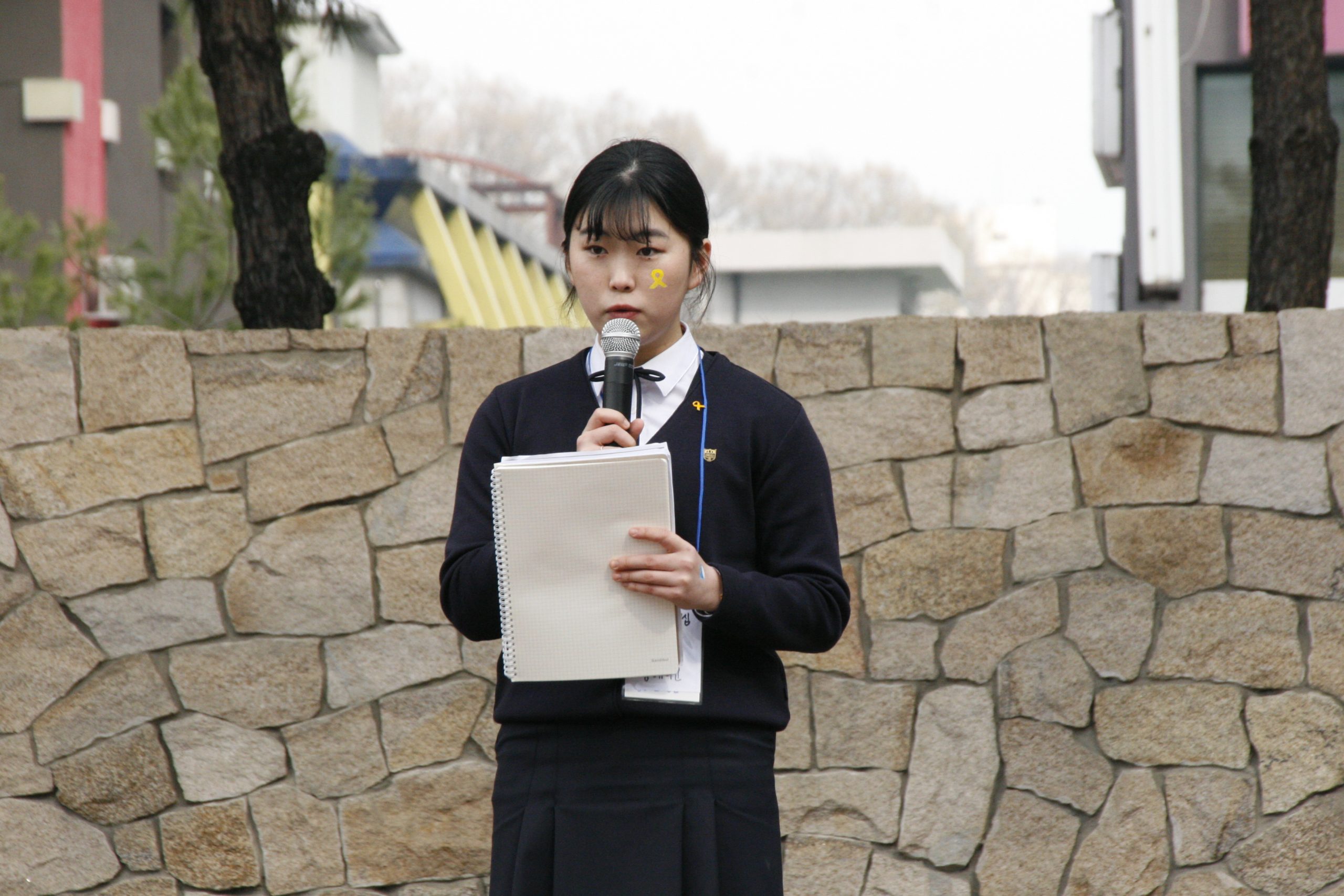 [수완뉴스=김동주 기자] 원주시 장미공원에서 청소년의 행동하는 양심 주최로 14일 오후 2시부터 세월호 참사 5주기 추모식이 진행되었다. 5주기 이틀 앞두고 열린 추모식에서 김예원 학생이 추모시 “비”를 낭송하고 있다.