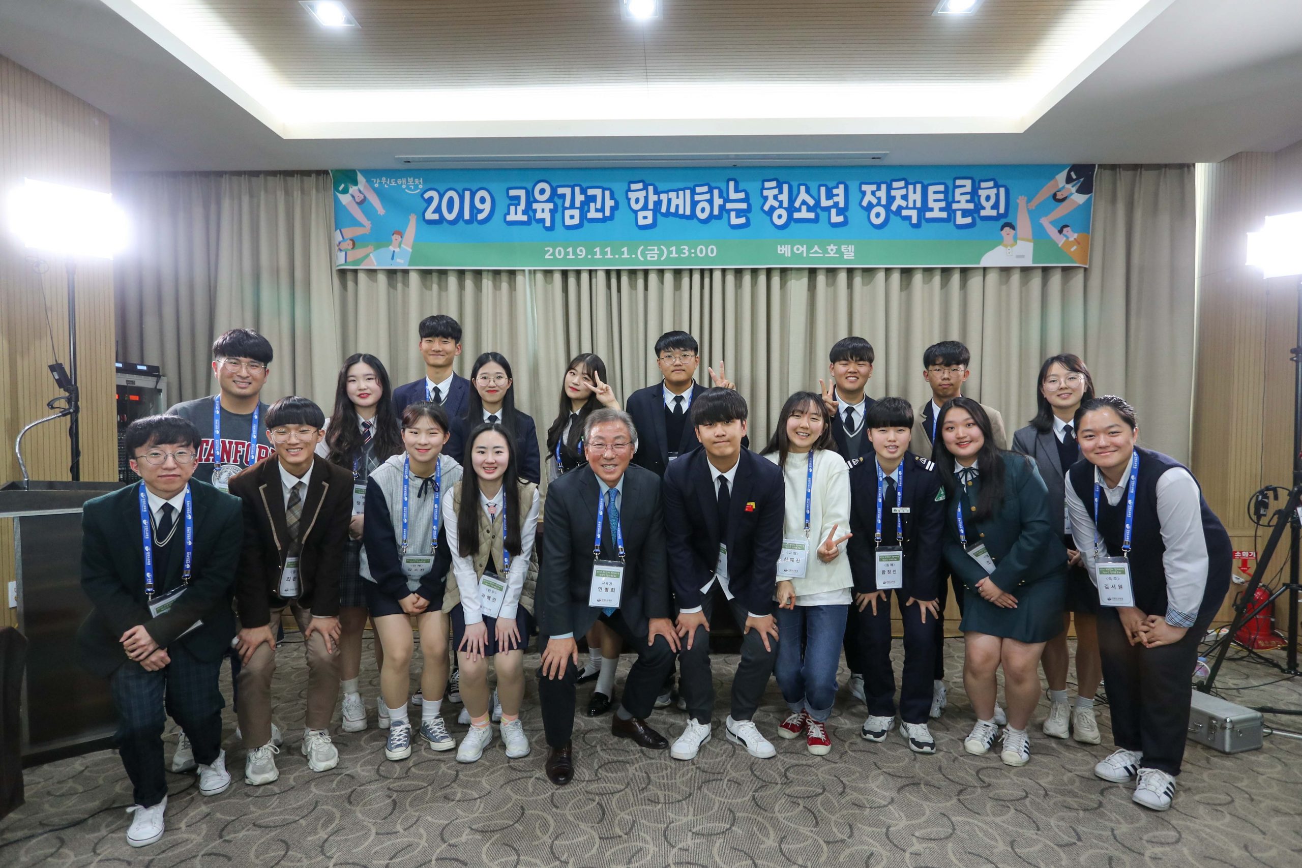 2019년 청소년 정책토론회는 민병희 교육감과 도내 18개 시.군 고등학생 18명이 함께 음악, 책, 교육정책 3가지 주제에 대해 자유롭게 이야기를 나누는 자리가 되었다.