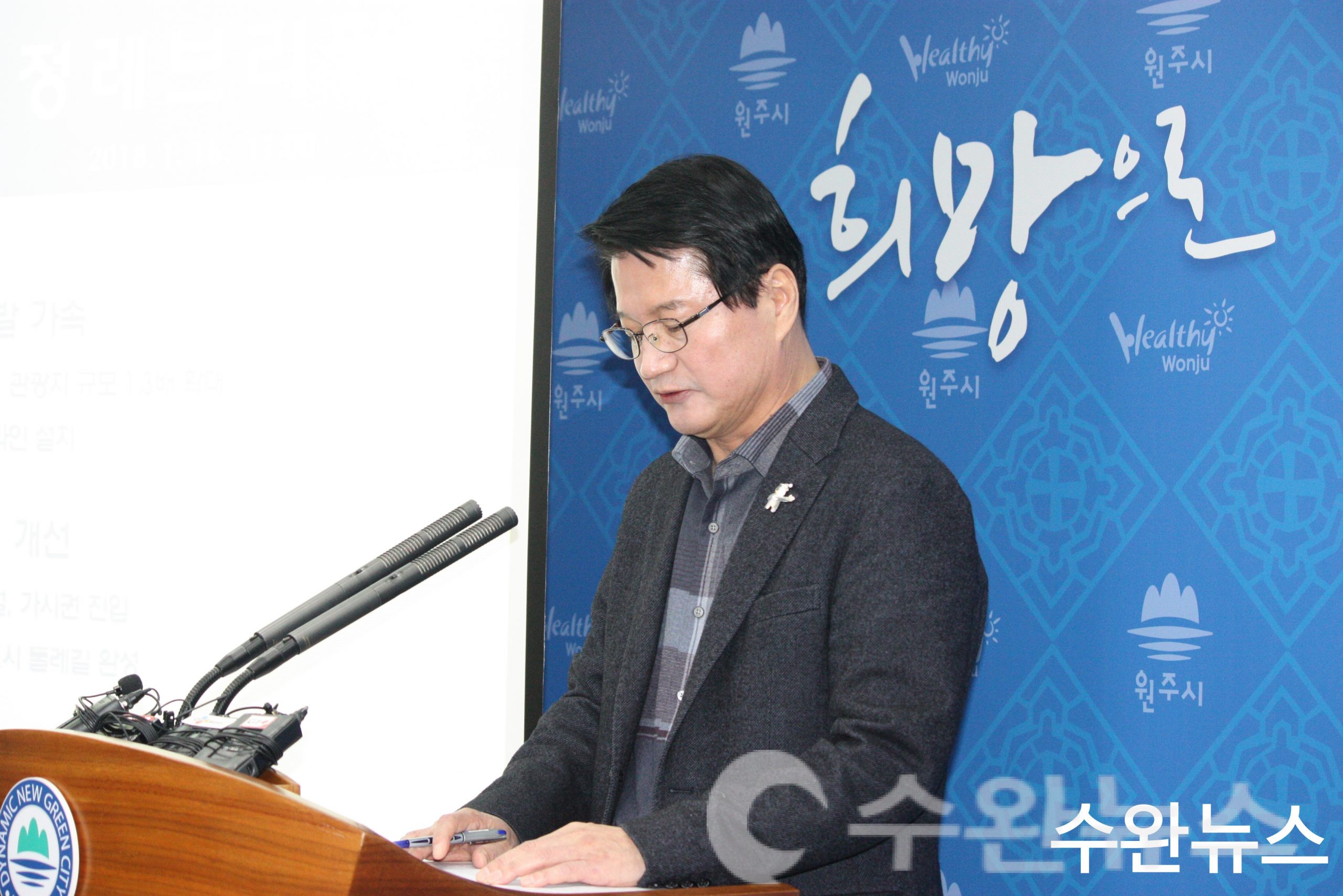 브리핑하는 원창묵 원주시장 ⓒ 수완뉴스