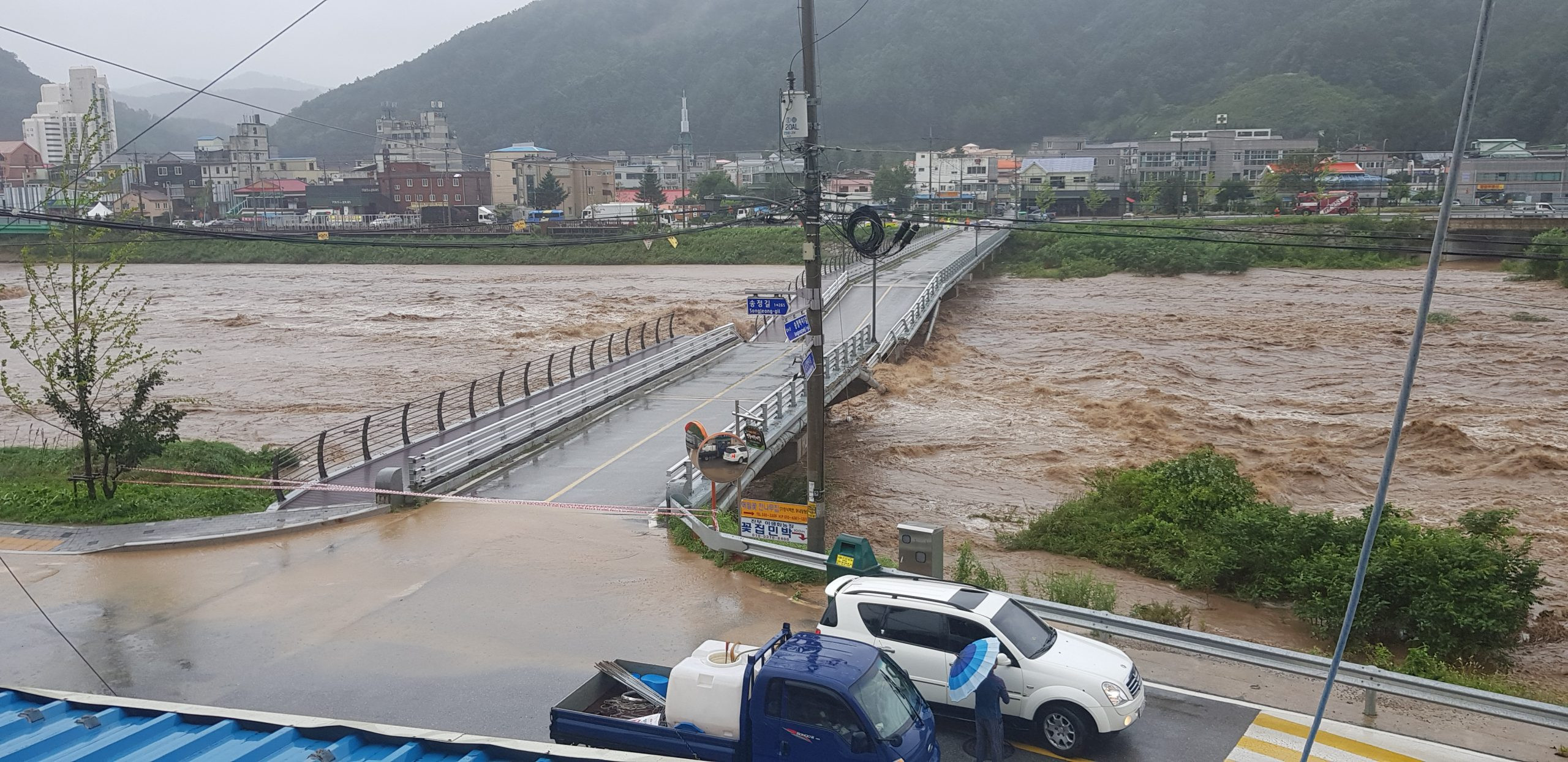 [수완뉴스=김동주 기자] 폭우로 인하여 3일 오전 진부면 석미아파트 앞 송정교가 붕괴가 되었다. 이에 인근 주민들의 시가지 접근이 어려워진 상황이며, 다행히 인명피해는 없는 것으로 확인되고 있다.