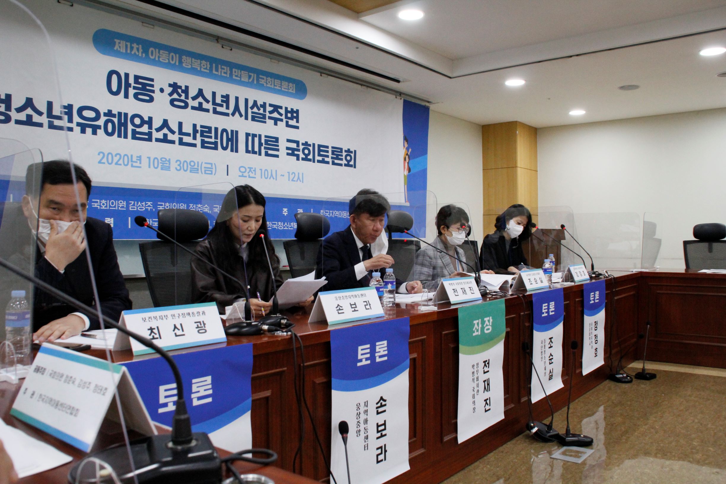 아동 청소년 시설 주변 청소년 유해업소 난립에 따른 국회 토론회에서 토론자들이 토론회를 진행하고있다. (사진=수완뉴스)