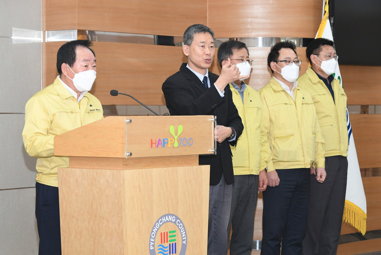 사회수완뉴스 포토[사진] 평창군, 코로나19 추가 확진자 발생 긴급 브리핑 가져By Kim Tongjoo - 2021년 3월 10일0공유하다Email인쇄LINENaverFacebookTwitterWhatsAppTelegram ▶ 포스트 듣기 음성을 생성하는 중...[수완뉴스=김동주 기자] 평창군은 오늘 10일 군청 대회의실에서 코로나19 추가 확진자 발생에 따른 긴급 브리핑을 가졌다. 한왕기 평창군수는 “신속하고 정확한 역학 조사를 통해 철저한 자가격리 등 조치를 취하고 있다”고 밝혔다.김동주 기자