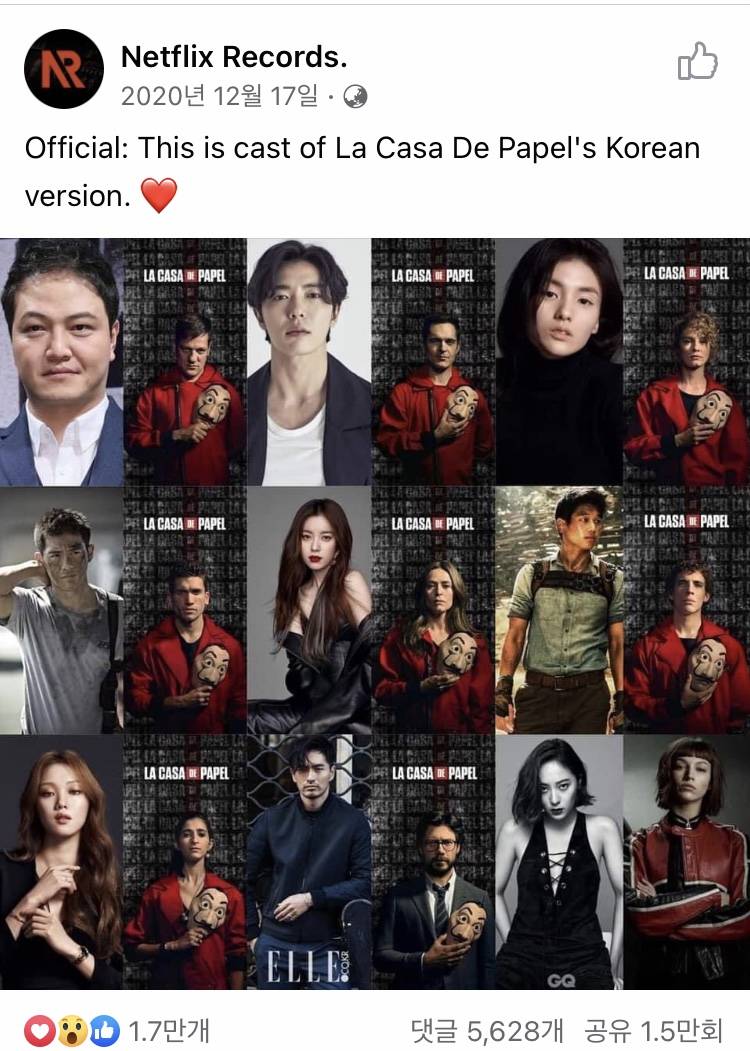 넷플릭스 인기 오리지널 시리즈 ‘종이의집’이 한국판 리메이크 버전으로 시청자들을 찾아간다. (사진=넷플릭스 공식 페이스북)