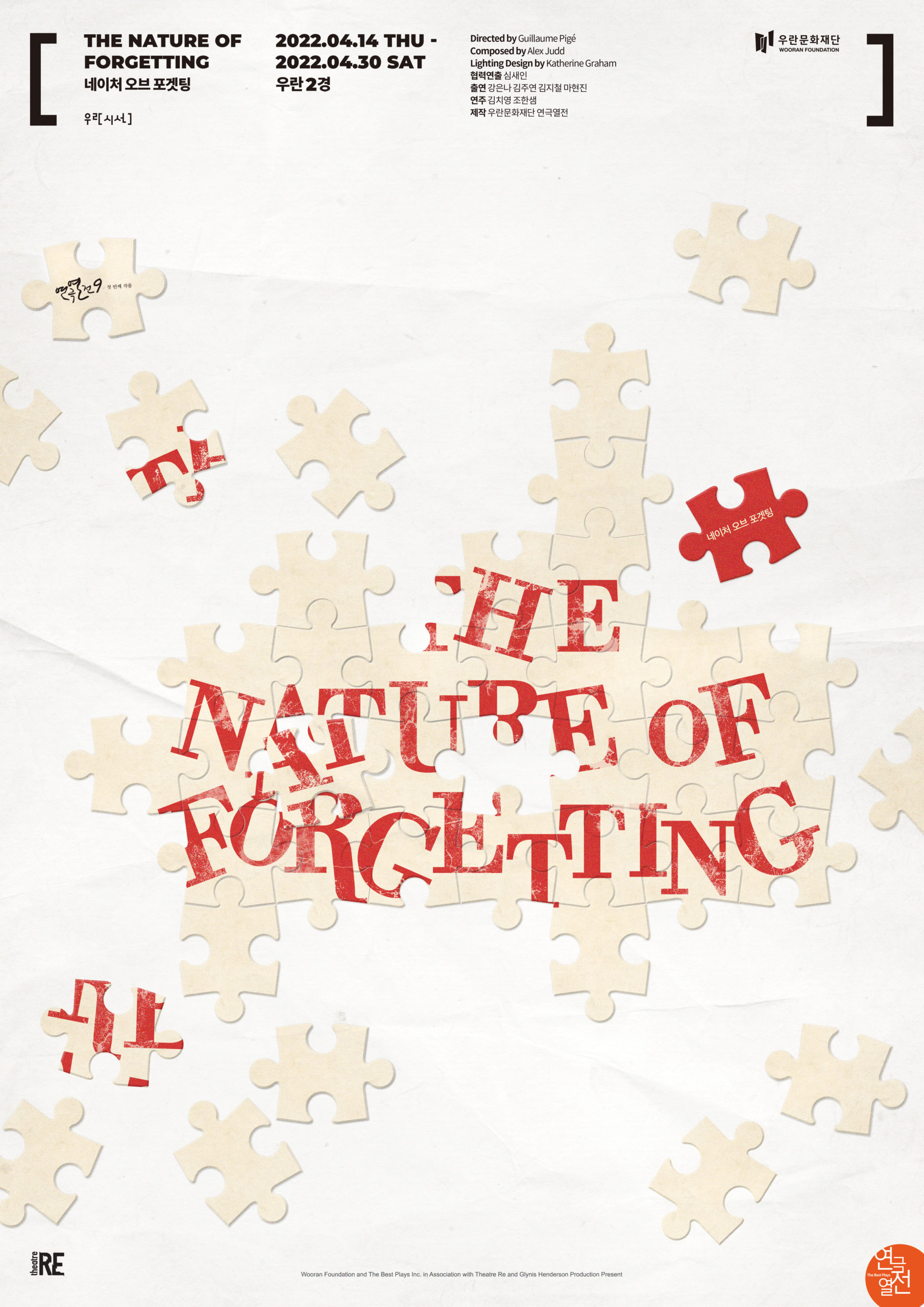 피지컬 시어터 <네이처 오브 포겟팅(The Nature of Forgetting)>은 오는 4월 14일부터 우란문화재단 우란2경에서 공연되며, 3월 25일부터 인터파크 티켓과 연극열전 홈페이지에서 예매 가능하다. (문의 연극열전 02-766-6007)