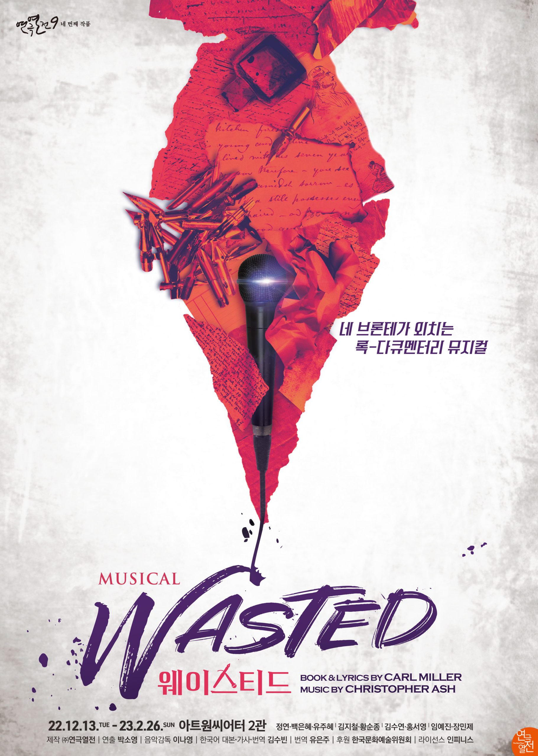 뮤지컬 <웨이스티드>는 오는 12월 13일부터 대학로 아트원씨어터 2관에서 첫 막을 올린다.
