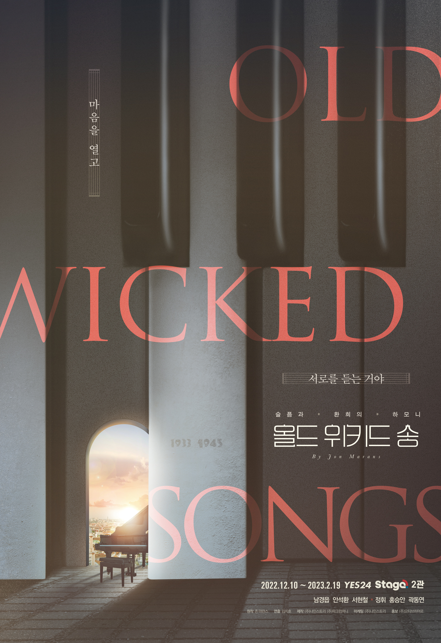 아름다운 클래식 선율 속에서 세대를 초월해 서로의 아픔을 위로하는 우정을 그리는 음악극 <올드 위키드 송>은 11월 10일 인터파크 티켓과 예스24 티켓에서 프리뷰 티켓을 오픈한다. 12월 10일부터 내년 2월 19일까지 예스24스테이지 2관에서 관객을 맞이할 예정이다.