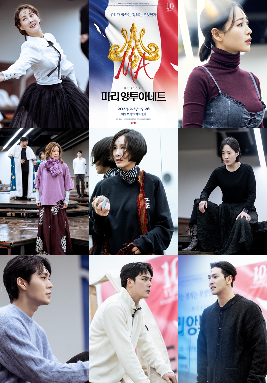 공개된 사진에는 마리 앙투아네트 역의 김소향, 이지혜, 마그리드 아르노 역의 옥주현, 윤공주, 이아름솔, 악셀 폰 페르젠 백작 역의 이해준, 윤소호, 백호를 비롯해 작품의 기념비적 시즌의 무대를 완성해갈 배우들이 열연을 펼치고 있어 이목을 집중시킨다.