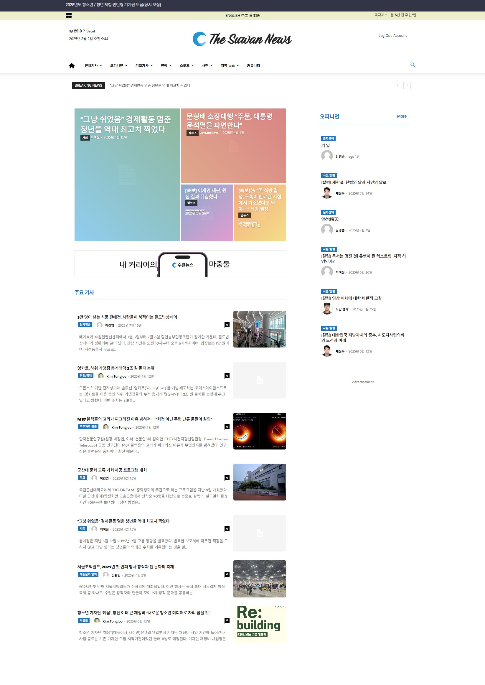 • 디자인 기획: 분야별 카테고리처럼, 청소년과 청년층이 관심 있는 기사를 주목할 수 있는 비주얼