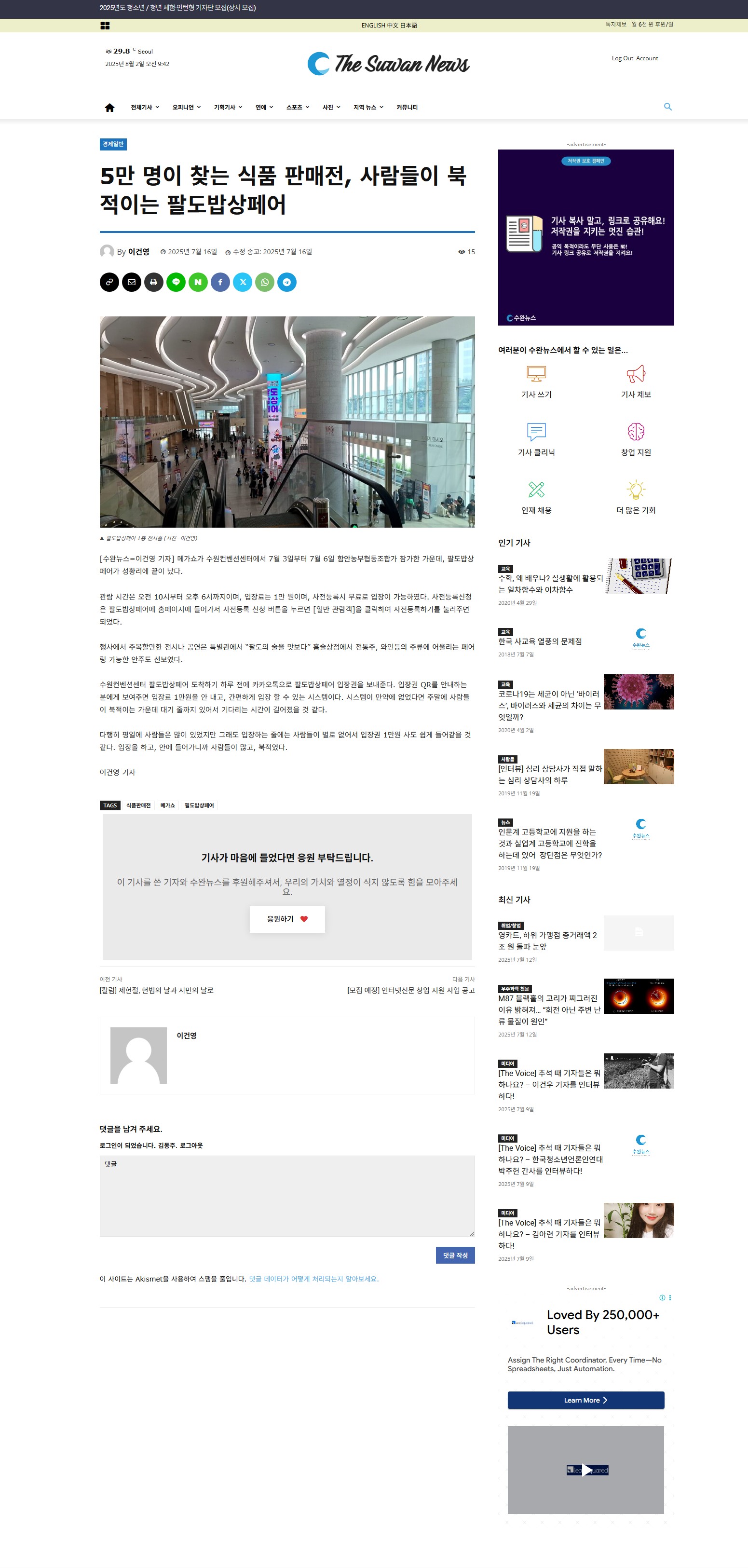 • 의견 표현과 공론화가 가능한 참여형 기능(댓글, 게시판, 기사 작성 등)